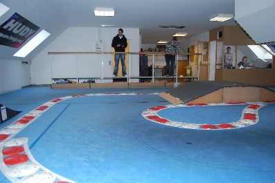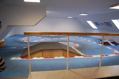 Dies ist die Rennstrecke der Hobby-Theke Aschaffenburg, die den Mitgliedern des MCRT Schaafheim zur Verfügung steht. Diese ist mit ihren rund 130qm zwar recht klein läßt sich aber sehr flüssig fahren.
